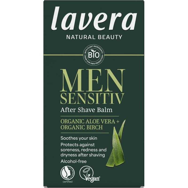 Zacht en zeer effectief: lavera Men Sensitiv After Shave Balm. Zonder alcohol, voorkomt een brandend gevoel van de huid, roodheid en een droge huid. Hydraterende, biologische aloe vera en biologische berk hyrateren, kalmeren en verfrissen. De balsem wordt snel geabsorbeerd en is natuurlijk vrij van kunstmatige kleurstoffen en conserveringsmiddelen*. (*volgens de EU-Cosmetica verordening)