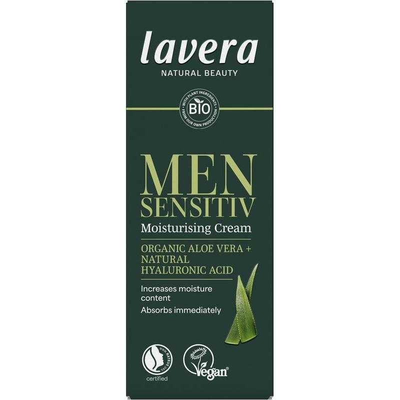 Milde, effectieve natuurlijke cosmetica: lavera Men Sensitiv hydraterende creme biedt intensieve hydratatie.