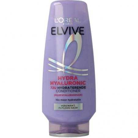 L'Oréal Paris Elvive Hydra Hyaluronic Conditioner is speciaal ontworpen om verzwakt, futloos haar intensief te hydrateren. De formule is verrijkt met hyaluronzuur, een ingrediënt met hydraterende eigenschappen. Het helpt het haar te hydrateren en zorgt ervoor dat haar vocht vasthoudt. Het resultaat: een gezonde glans en 10x meer hydratatie***. De nieuwe duurzame verpakking van L'Oréal Paris Elvive Hydra Hyaluronic Conditioner is nu verkrijgbaar in het standaard 250ml formaat en bevat 20% minder plastic**.
