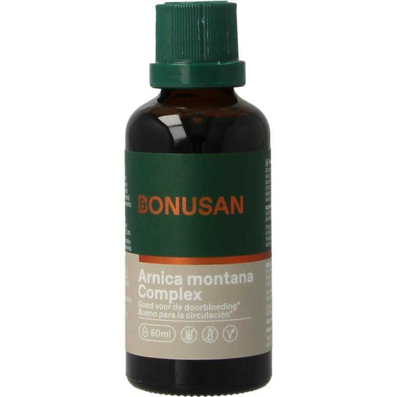 Arnica montana (valkruid) rhizoma, duizendblad (Achillea millefolium). Alcoholgehalte 82% v/v.