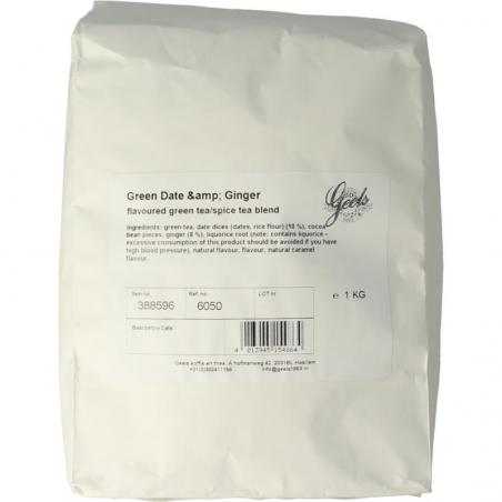 Groene Thee, dadels, cacaobonen, gemberwortel, zoethout, aroma.