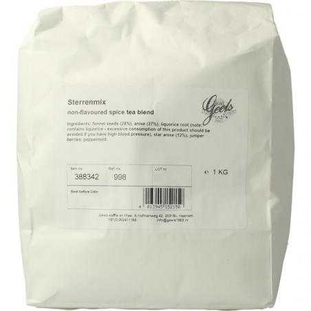 Venkelzaad, anijs, zoethout, steranijs, jeneverbessen, pepermunt.