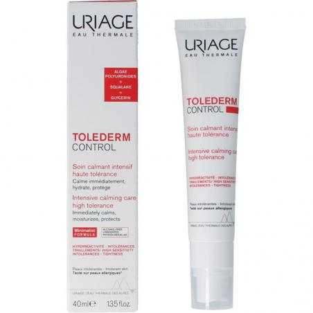 Uriage Tolederm control verzachtend. Zonder bewaarmiddelen, zonder alcohol, ongeparfumeerd, fysiologische pH.