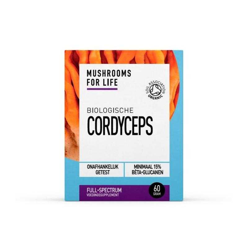 Cordyceps paddenstoelen poeder maakt deel uit van de een prachtige lijn met biologische paddenstoelenpoeders van Mushrooms For Life. Voeg het toe aan een smoothie, door de koffie of als pure paddenstoelen thee.