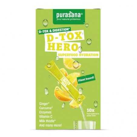 D-Tox Hero ondersteunt je natuurlijke spijsvertering en leverfunctie in balans te houden, dankzij plantenextracten, vezels en antioxidanten. Reinig je lichaam met dit superfood hydratatiepoeder. Makkelijke on-the-go sticks met verfrissende citroensmaak!