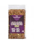 Deze crackers zijn gemaakt op basis van een rijke mix onbewerkte zaden, pitten en kalamata olijven. Ze bevatten hierdoor (80%) minder koolhydraten en juist veel eiwitten (36%) en vezels (12%).
