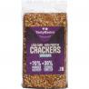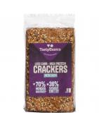 Deze crackers zijn gemaakt op basis van een rijke mix onbewerkte zaden, pitten en peulvruchten. Ze bevatten hierdoor (70%) minder koolhydraten en juist veel eiwitten (36%) en vezels (15%).