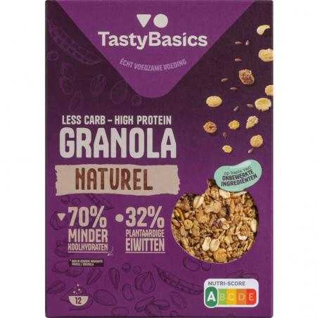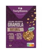 Deze granola is gemaakt op basis van een rijke mix onbewerkte zaden en peulvruchten. De muesli bevat hierdoor (70%) minder koolhydraten en juist veel eiwitten (32%) en vezels (25%).